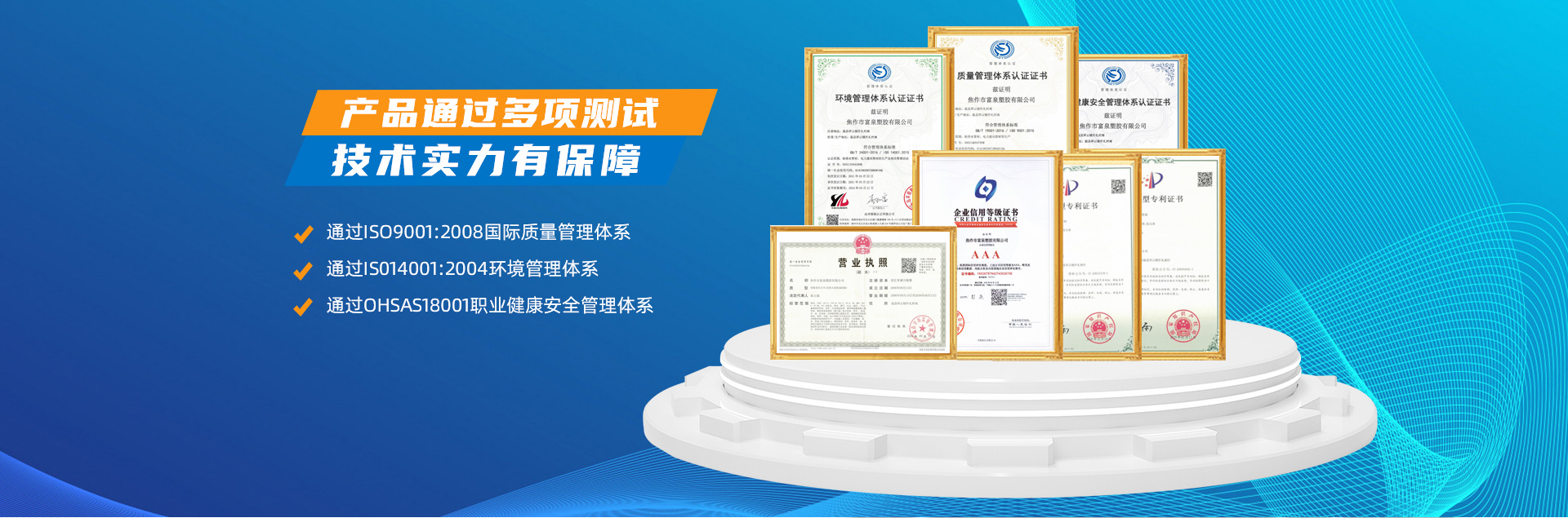 - 焦作市富泉塑胶有限公司,创立于1995年,是一家集研发、设计、生产、销售为一体的大型管材企业。公司位于太极故里、黄河之滨一一河南焦作温县。公司占地128亩,现有职工210余人,其中具有中技术职称的19人。生产、检验设备58台(套),包括PVC实壁管生产线11套、PE实壁管生产线12套、HDPE双壁波纹管生产线6套、PVC双壁波纹管生产线5套,检验设备14台(套)。主要产品有:Φ20mm-630mm、各种压力规格的PVCU、PVC-M、PE给水管材,PVC-U节水灌溉管材,HDPE燃气和矿用管材,DN200-800mm的HDPE、PVC双壁波纹管及各种喷灌、滴灌工程材料。承接大中型市政供排水、饮水安全及节水灌溉等工程?! 「蝗芙汗局厥硬返闹柿?、安全、环保和节能,在同行业中率先完成了“新华节水产品认证”,全方面通过ISO9001:2008国际质量管理体系、IS014001:2004环境管理体系和OHSAS18001职业健康安全管理体系的一体化导入,并建立起规范的现代企业管理体系。公司以“质量”为先导,采用质量跟踪、多环节把关的方法,组建具有行业水准的企业技术检测中心,常年委托水利部节水灌溉设备检测中心、河南省产品质量监督检验院对产品跟踪检测,并由中国人民保险公司承保产品质量。公司连续多年被河南省水利厅确定为“安全饮水设备、节水灌溉设备”定点生产企业,并获得“中国名优产品”“质量、服务、信誉AAA企业”“河南省**产品”“河南省水利企业”“河南省守合同、重信用企业”等荣誉称号?! 「蝗芙汗炯岢帧坝没稀钡姆窭砟?,长期以来,全方面关注客户价值,不断提升服务水平。服务队伍常年为客户的产品设计、施工、安装提供合理的方案和全程细致、周到、**、快捷的技术服务。公司自成立以来,一直坚持以人为本的宗旨,塑造企业形象,并致力于新产品的开发,凭借雄厚的技术开发能力,先进的工艺制造流程,严格的质量管理保证体系,优良的售后服务网络,已成为河南省大的饮水、灌溉及排水管材设备制造商。产品畅销全国,而且还以公司雄厚的综合实力在业界中占据着重要的地位。